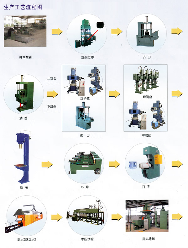 創(chuàng)辦于83年的泰州市羚驊機(jī)械有限公司是國(guó)內(nèi)設(shè)計(jì)生產(chǎn)液化石油氣鋼瓶成套生產(chǎn)設(shè)備的企業(yè)。產(chǎn)品包括:開平落料線、封頭拉伸成型機(jī)、齊口機(jī)、縮口機(jī)、清理去毛剌機(jī)、沖孔機(jī)、焊瓶嘴機(jī)、焊護(hù)罩機(jī)、焊底座機(jī)、投瓶…